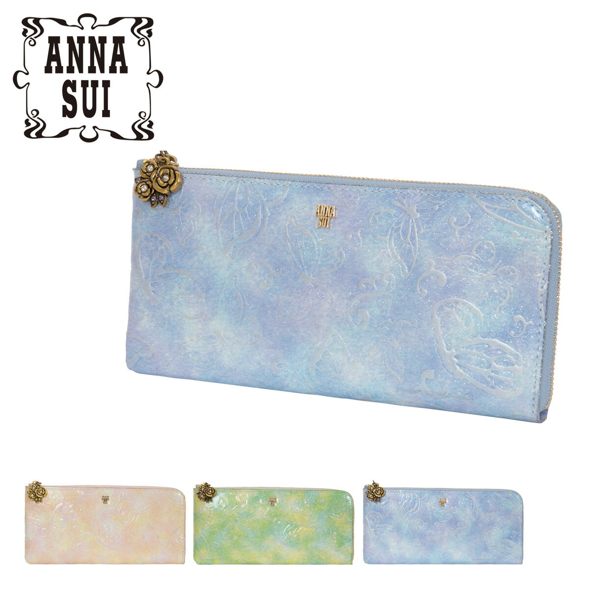 アナスイ 長財布 ラウンドファスナー 大容量 ルーミー レディース 310490(新品番:316900) ANNA SUI | 本革 レザー ブランド専用BOX付き 蝶 エンボス エナメル ラメ [春財布][即日発送][DL10]