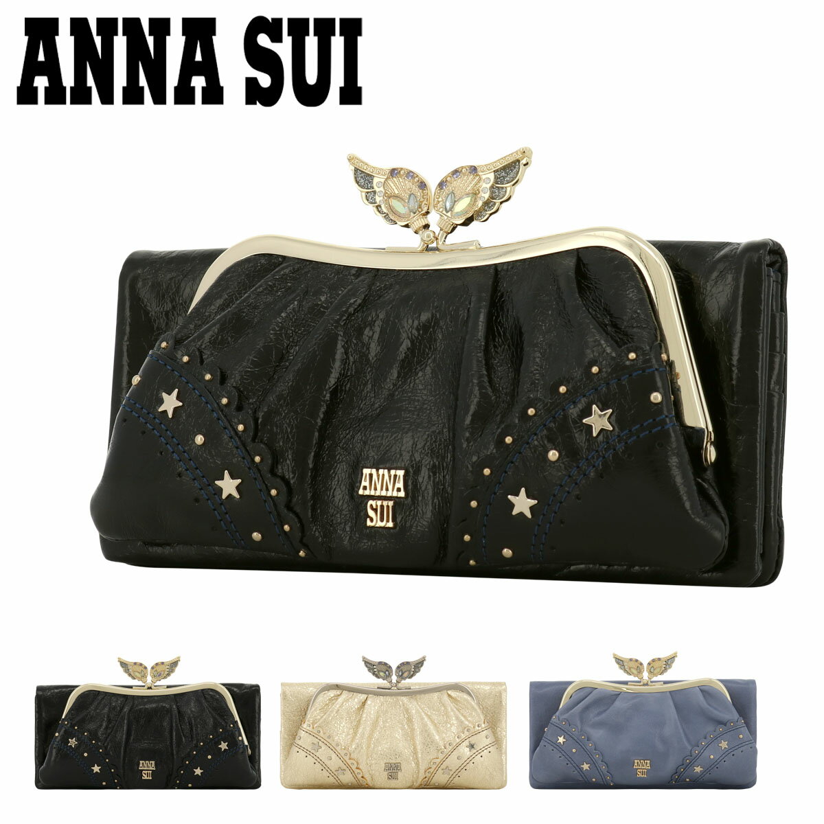 【SALE】アナスイ 長財布 かぶせ がま口 本革 レディース ニケ 316520 ANNA SUI | 羽 牛革 レザー やぎ革[春財布][即日発送][DL10]