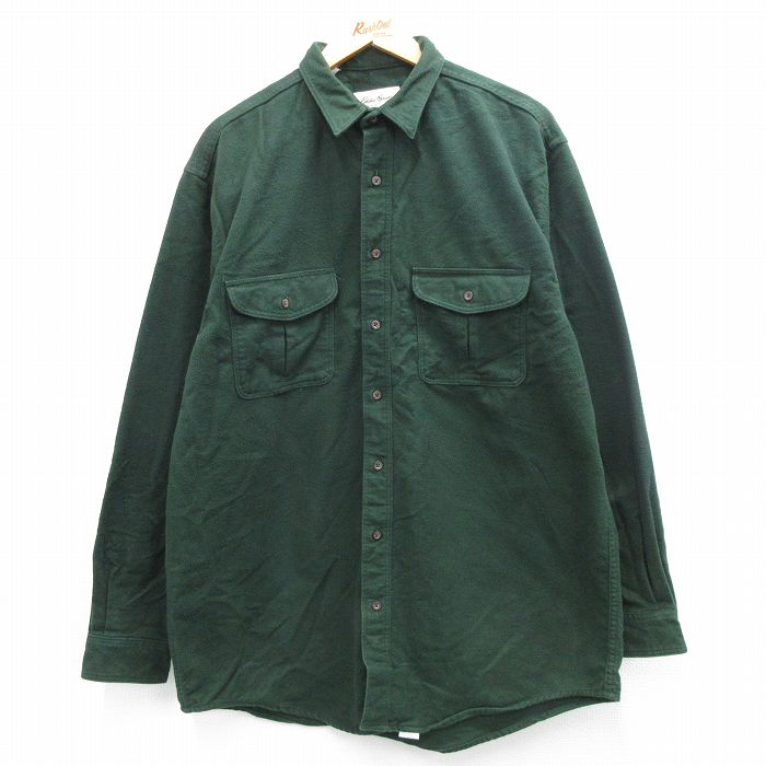【中古】古着 エディーバウアー 長袖 ヘビー フランネルシャツ メンズ 00年代 00s 大きいサイズ 2L LL ビッグシルエット ゆったり ビッグサイズ オーバーサイズ ロング丈 コットン 緑 グリーン XLサイズ 中古 トップス | 秋冬 秋物 秋服 冬物 冬服 カジュアルシャツ メ