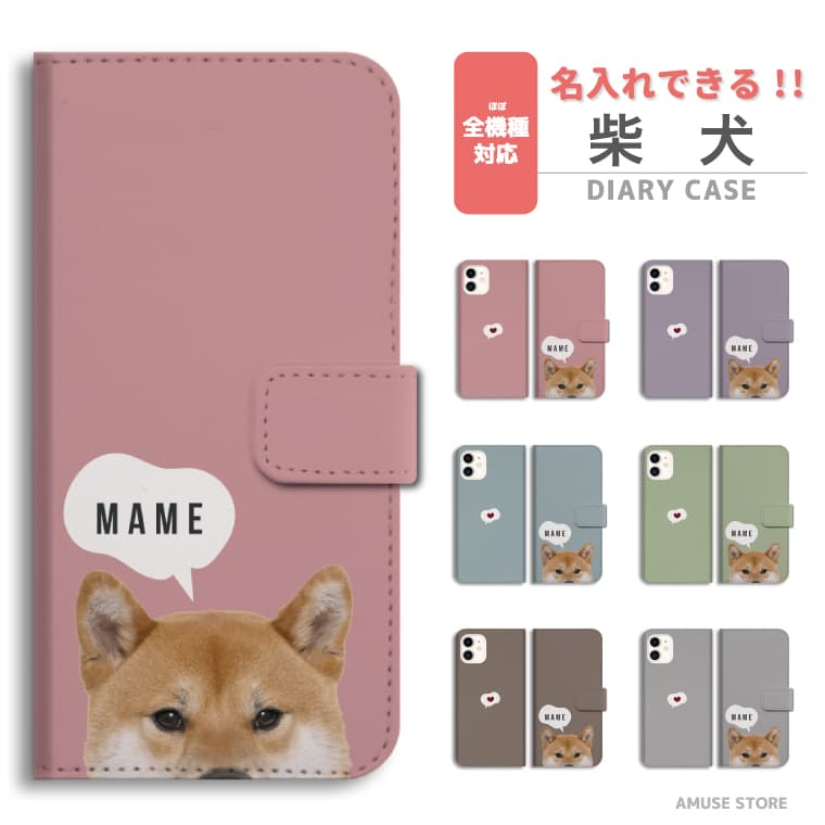 名入れ スマホケース 手帳型 全機種対応 AQUOS sense8 wish3 Pixel 7a 8 Xperia 10 V 5 IV Galaxy S24 Ultra A54 OPPO Reno9 Reno7 ケース iPhone15 Pro iPhone14 iPhone13 mini iPhone SE 柴犬 黒柴 犬