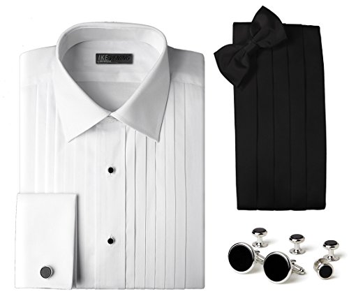 【中古】【未使用・未開封品】エレガントなタキシードパッケージ - コットンレイダウンカラーシャツ、シルク蝶ネクタイとカマーバンドセット、オニキスカフリンクとスタッドの