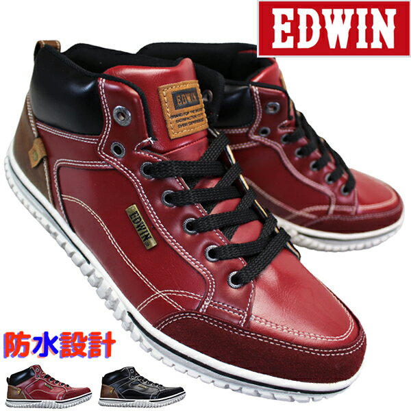 エドウィン 防水スニーカー EDW7859 ブラック・レッド 25cm~28cm メンズ シューズ スニーカー ミッドカットスニーカー 靴 紐靴 運動靴 防水ブーツ EDWIN