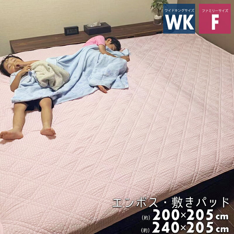 敷きパッド ファミリー サイズ F ワイドキング サイズ WK さらさら エンボス 240×205cm 200×205cm オールシーズン 丸洗いOK 通気性 ふわふわ 敷パッド 敷パット 涼感 キルティング 敷きパット ゴム マットレス用 敷き布団用 ボーダー 柄