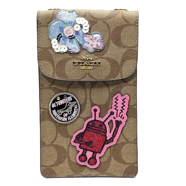 コーチ F39955 パッチワーク キースへリング シグネチャー スマホケース ショルダーバッグ クロスボディ キャンバスレザー ブラウン