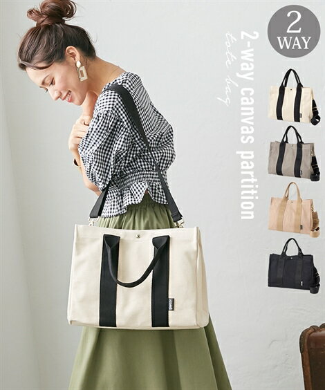 仕切り付き トートバッグ ショルダー 定番 ショルダーバック トートバック 2way ショルダーバッグ トート バッグ キャンバストートバッグ マザーズバッグ キャンバスバッグ 肩 紐 長め レディース メンズ 大きめ 布 A4 横 整理整頓 マチあり